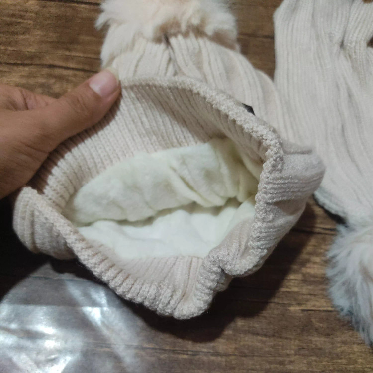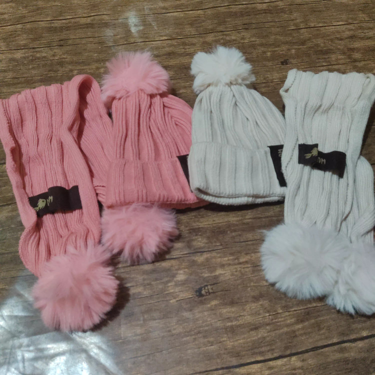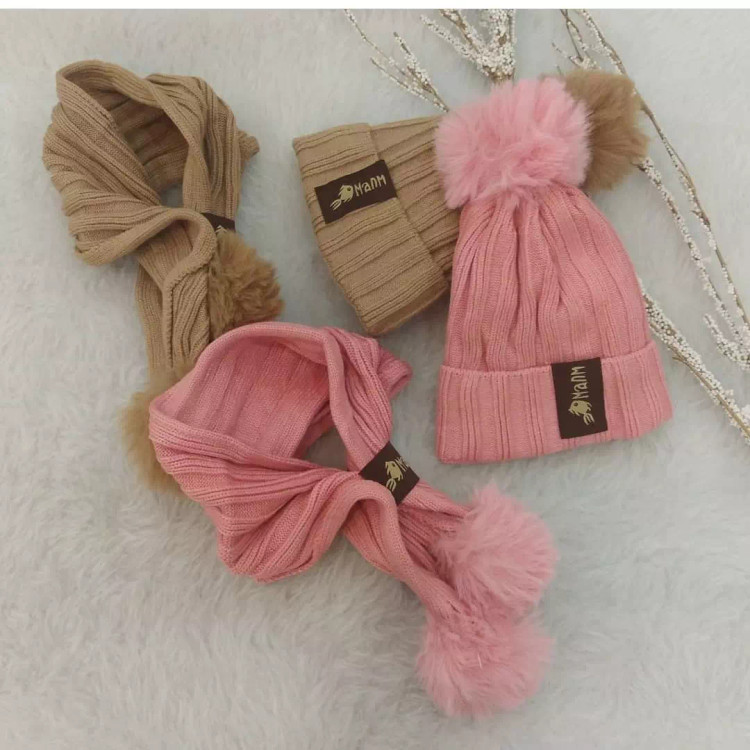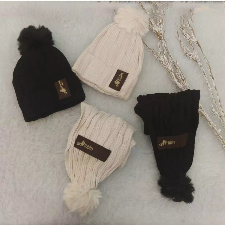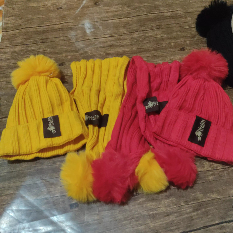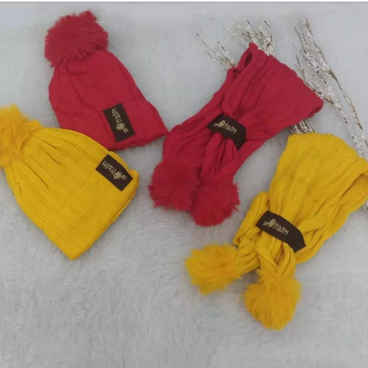 ست دو تکه شال و کلاه منگوله دار کار بافت، آستر دار رنگ ، زرد، مشکی، نسکافه ای، قرمز، صورتی، سفید مناسب یک تا شش سال