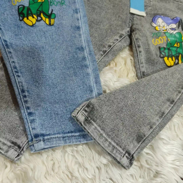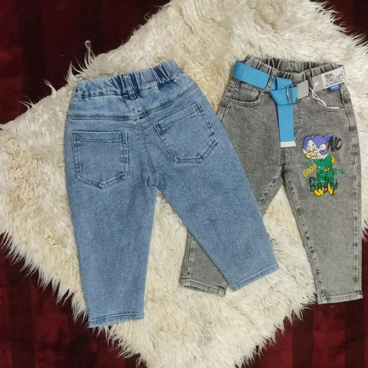 شلوار مام استایل اسپرت، جین اصل، دو رنگ دودی و یخی، کیفیت عالی ؛ شلوار مام استایل آدمک دو رنگ مناسب ده ماه تا چهار سال