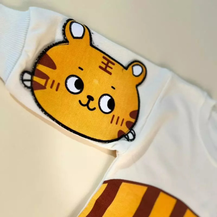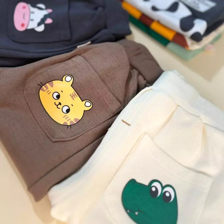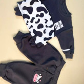 ست دو تکه ی تیشرت و شلوار سوزنی جنس اعلا طرح دایناسور و ببر و گاو مناسب ده ماه تا چهار سال