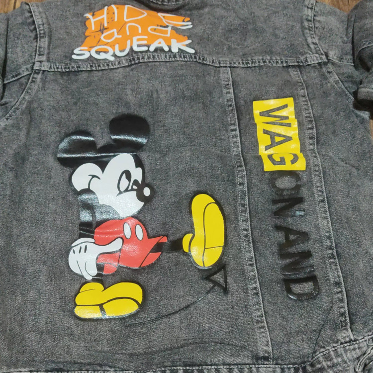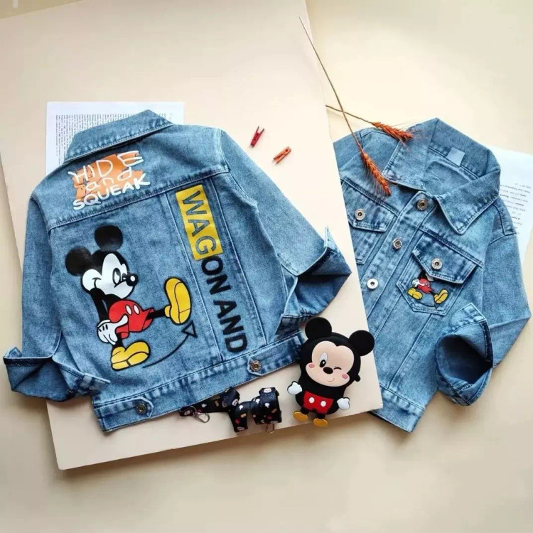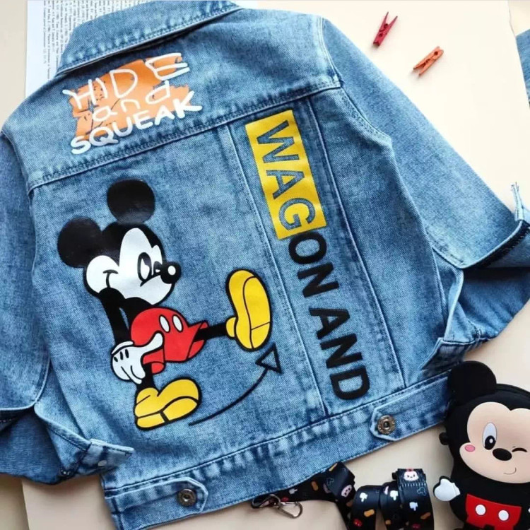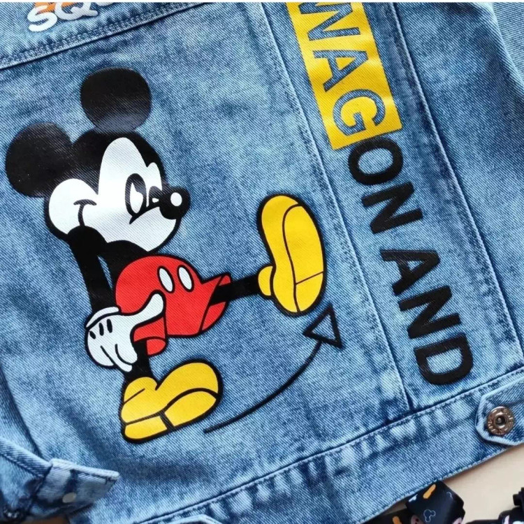 کت جین وارداتی میکی موس دو رنگ دودی و آبی فوق العاده با کیفیت زیبا و خاص مختص دو قلوها