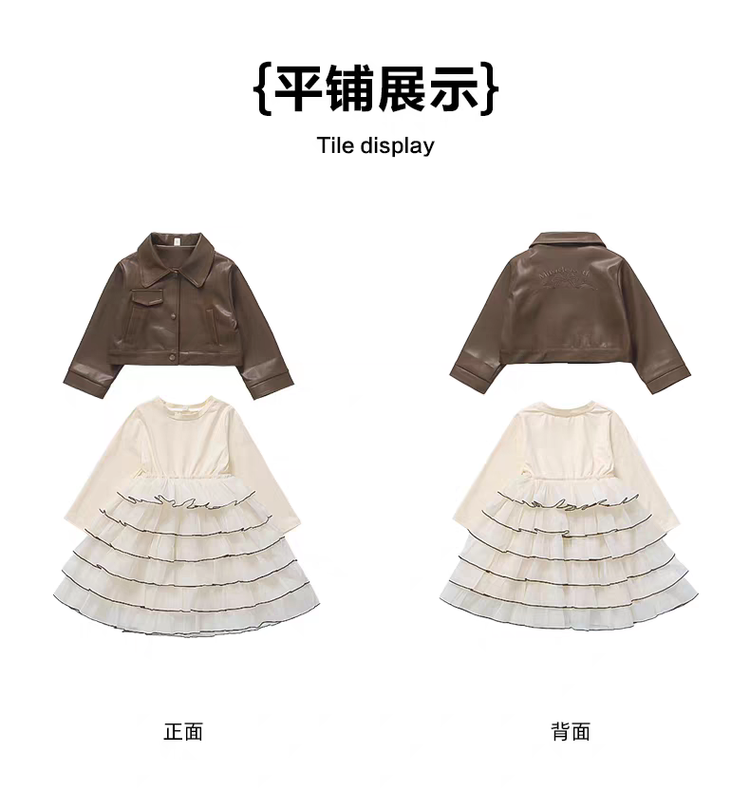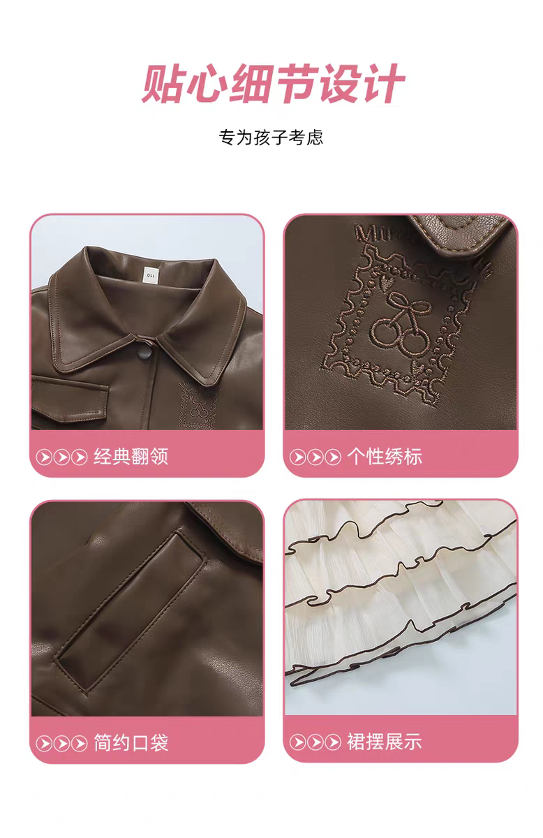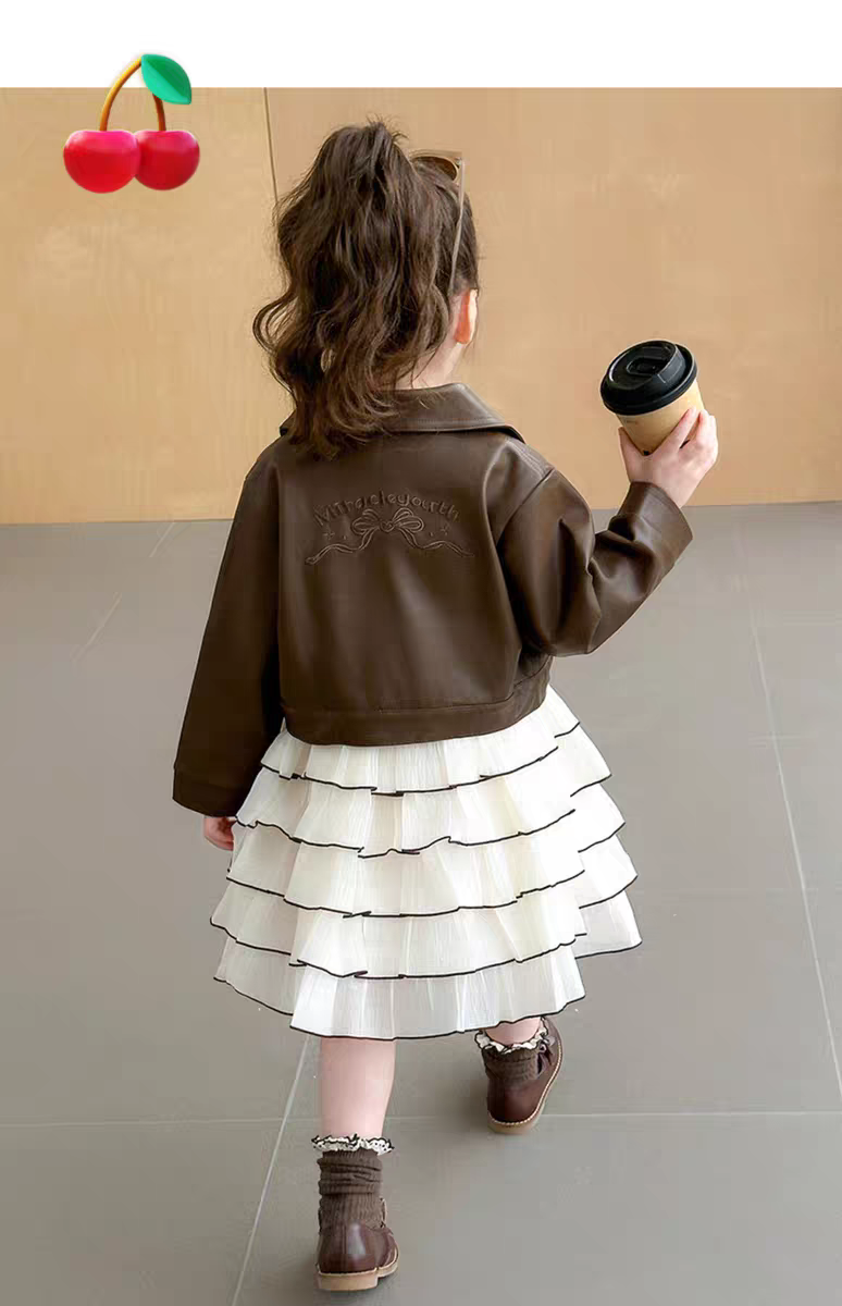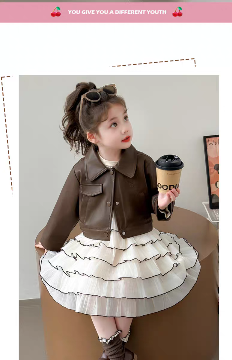 ست پیراهن دخترانه دامنچیندار همراه با کت چرمی