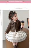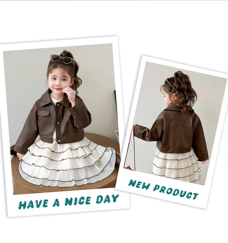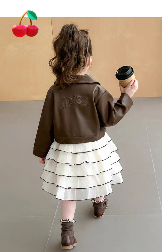یک استایل شیک، لاکچری و مناسب مهمانی، تولد، میهمانیهای رسمی و عکاسی. این ست شامل یک پیراهن دامنچیندار کرم رنگ با پارچه سبک و خوشفرم، بههمراه کت چرمی قهوهای با تنخور عالی است.