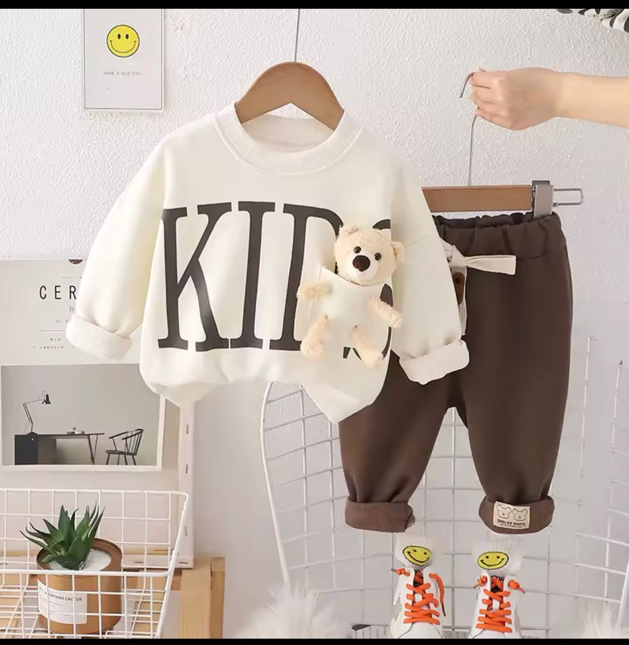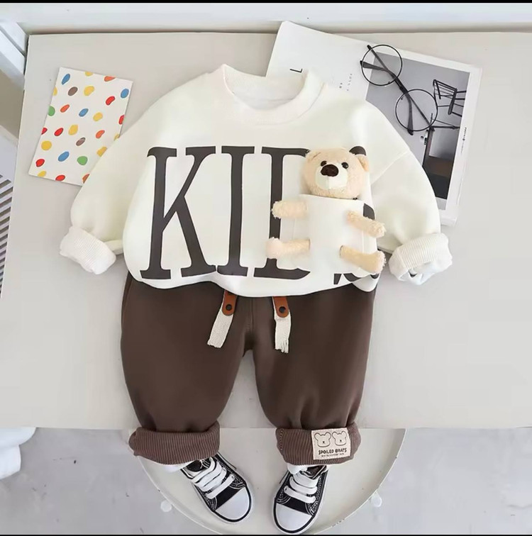 ببین چی آوردم برات یه ست جذاب وارداتی، با یه عروسک خوشگل کوچولوی تدی کیوت، جنس تیشرت دورس لاینردار با شلوار اسلش