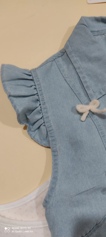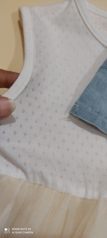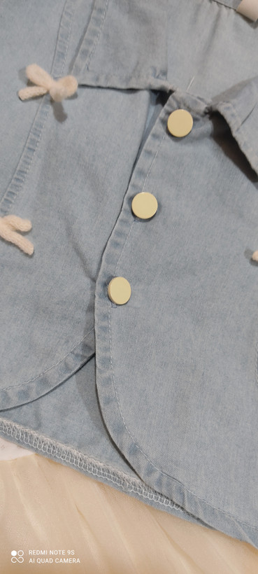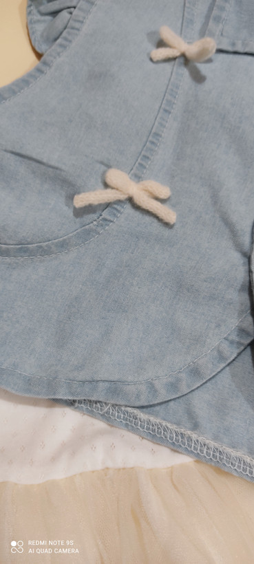 جنس وست جین کاغذی و جنس سارافون نخ پنبه تنفسی قسمت بالا تنه و دامن آستر نخی و رویی تور