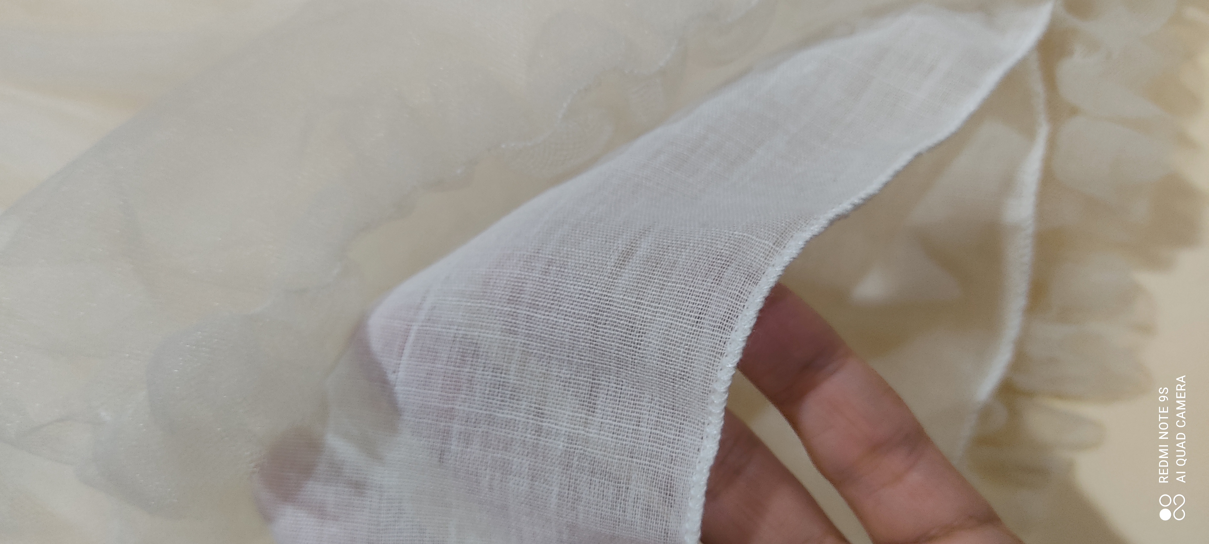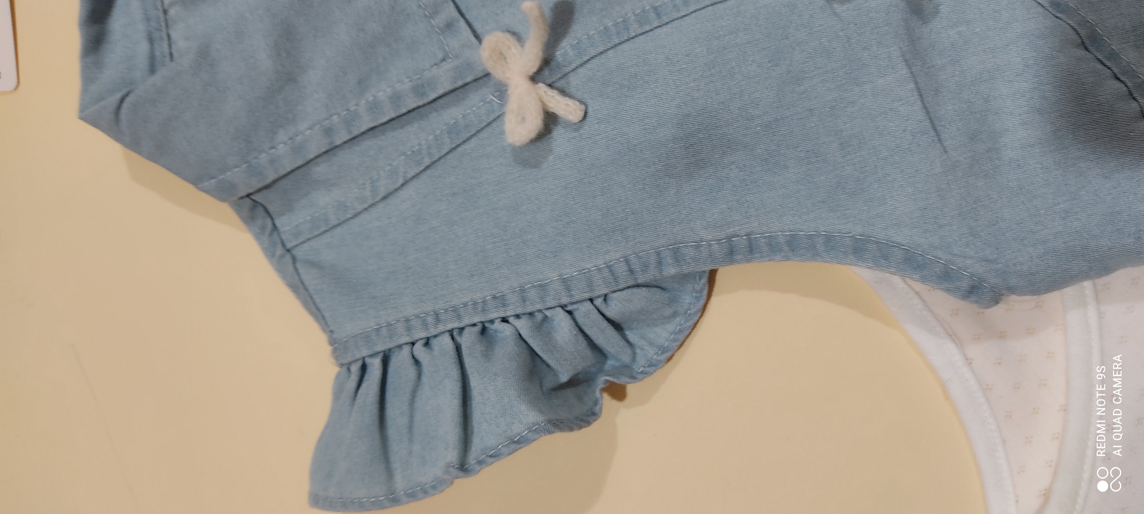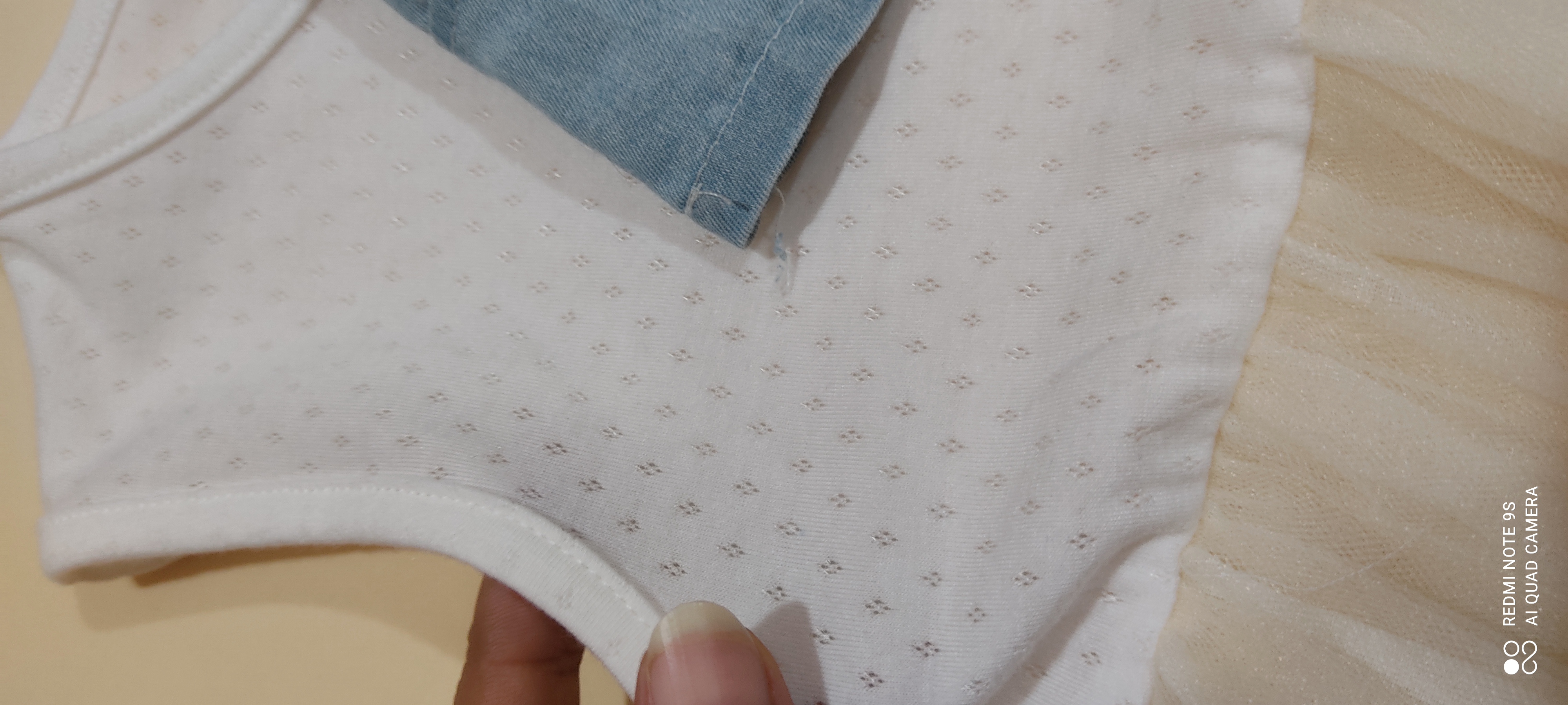 جنس وست جین کاغذی و جنس سارافون نخ پنبه تنفسی قسمت بالا تنه و دامن آستر نخی و رویی تور