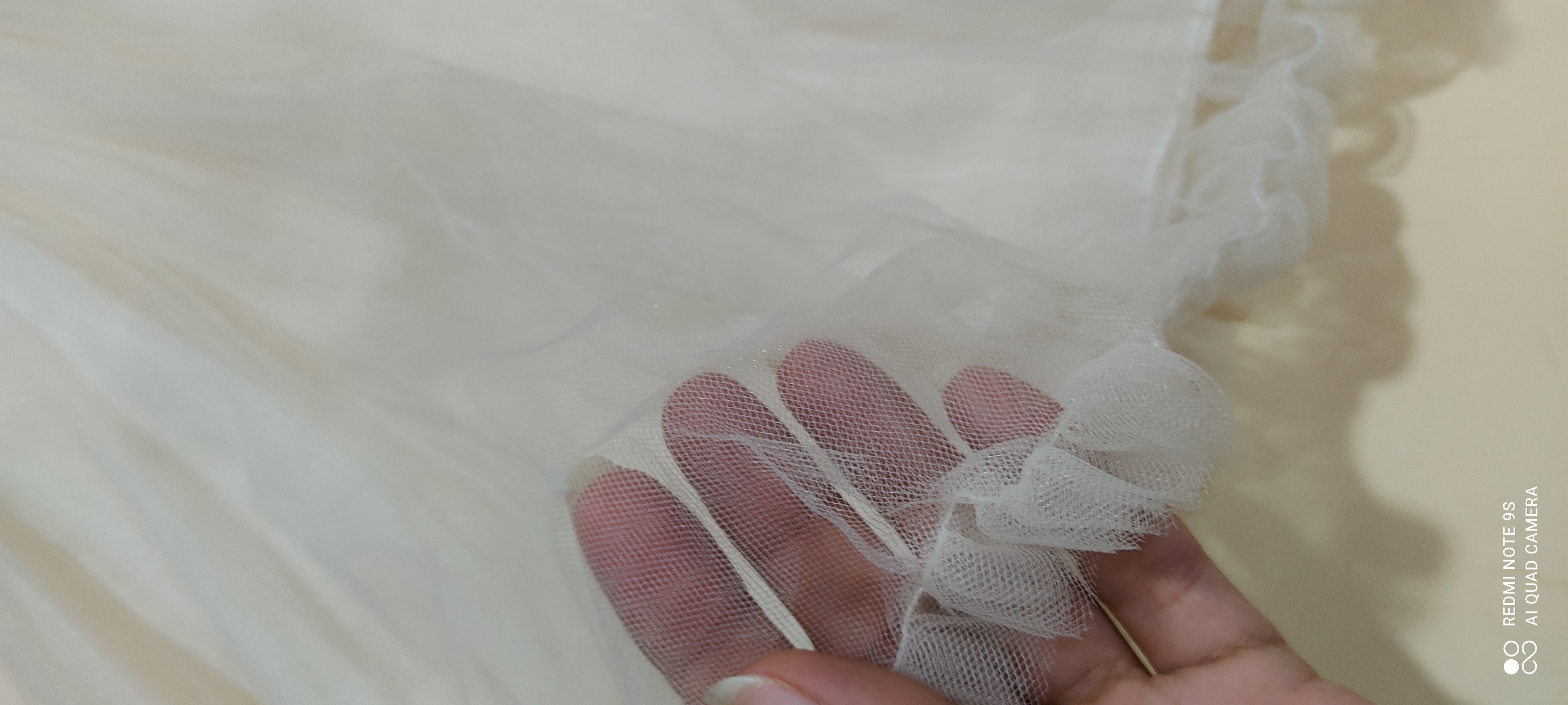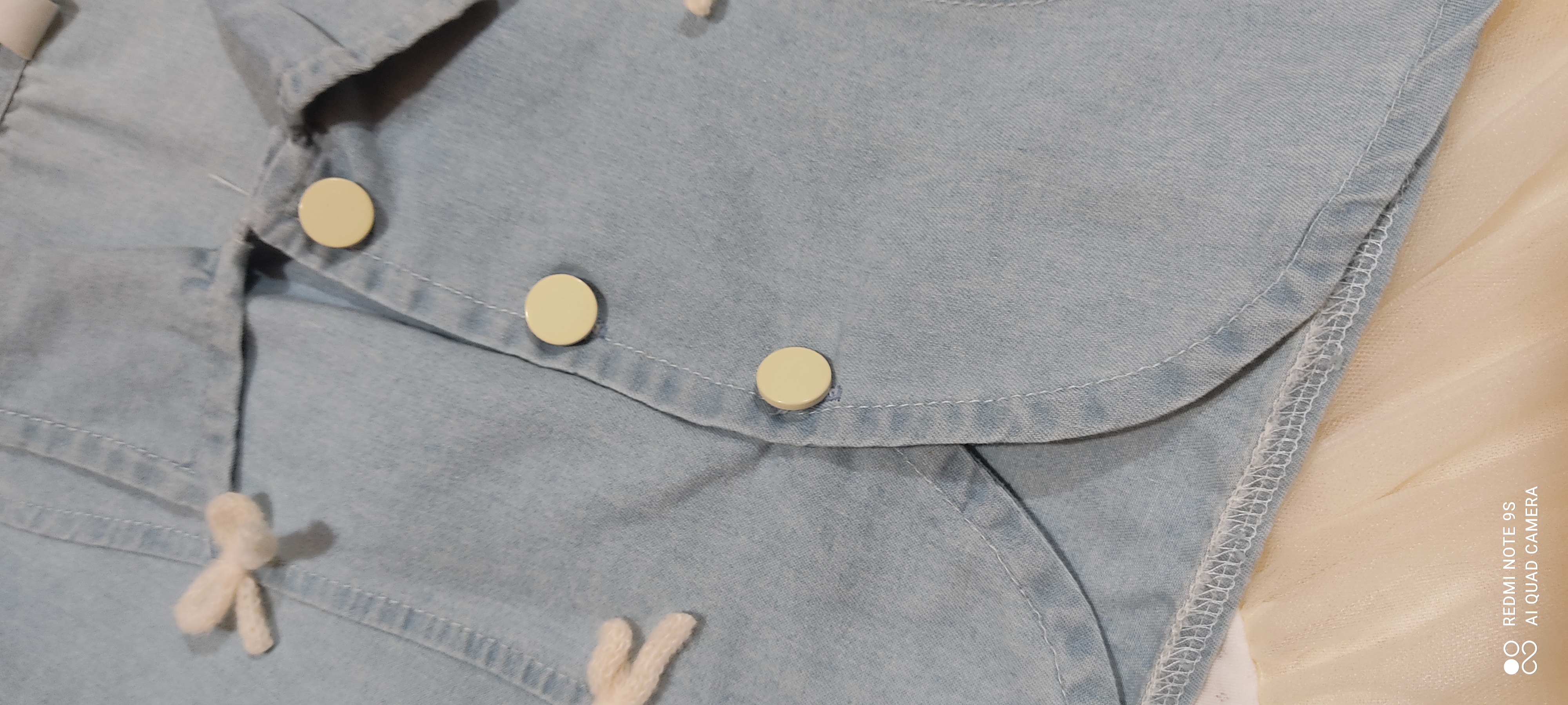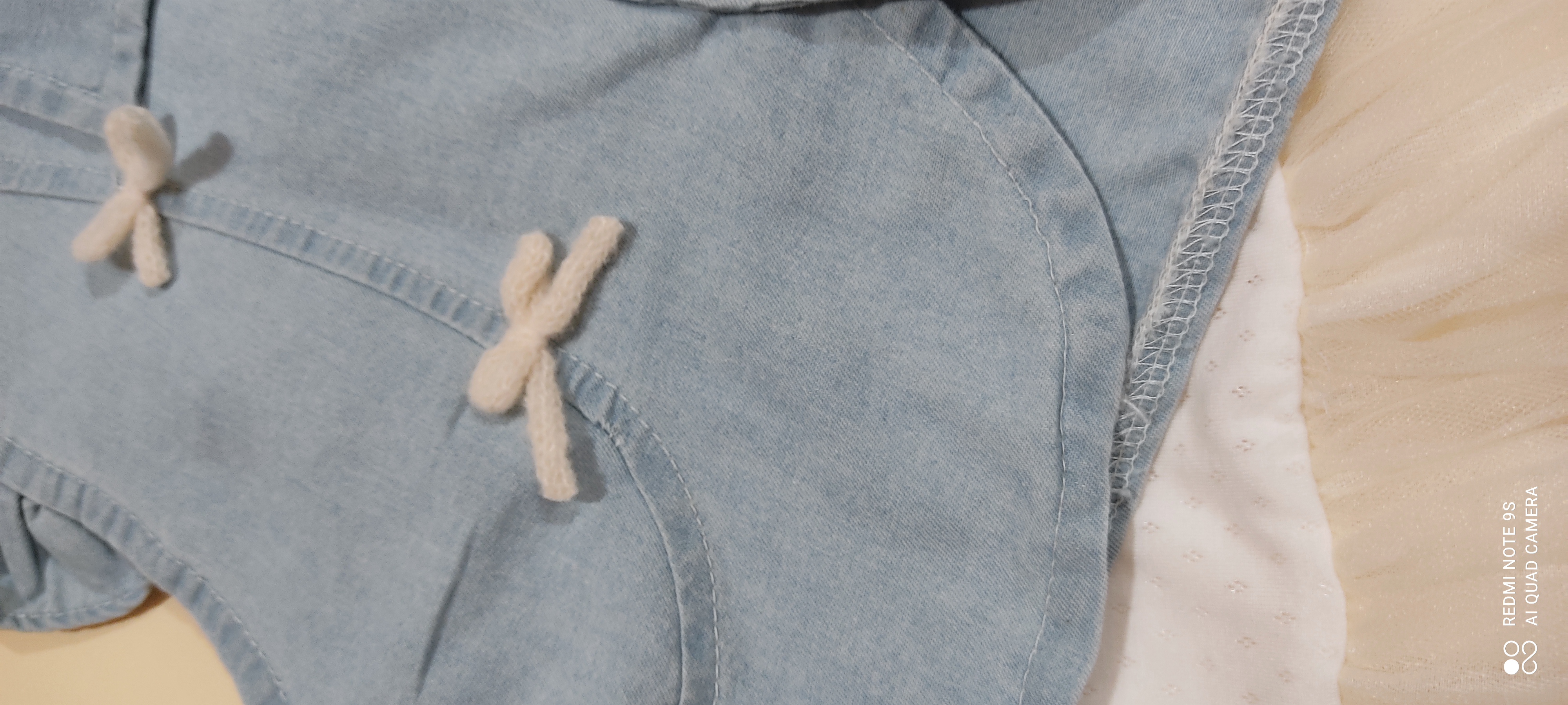 جنس وست جین کاغذی و جنس سارافون نخ پنبه تنفسی قسمت بالا تنه و دامن آستر نخی و رویی تور