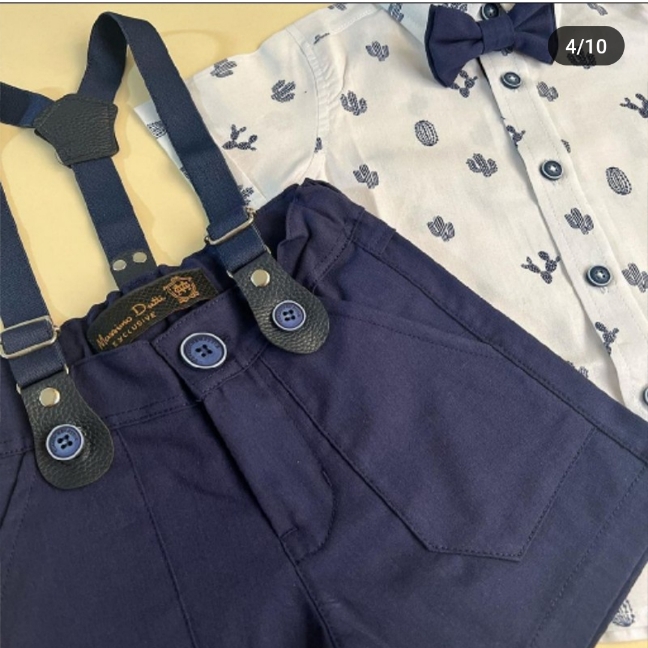 🔹️رنگ شلوارک و پاپیون سورمه ای روشن