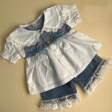 یه ست فوق العاده زیبا و خاص، شومیز کتون کنف و شلوارک جین، شما فقط تو تن کوچولو تصورش کن، عروسکه عرررروسک،🥰؛