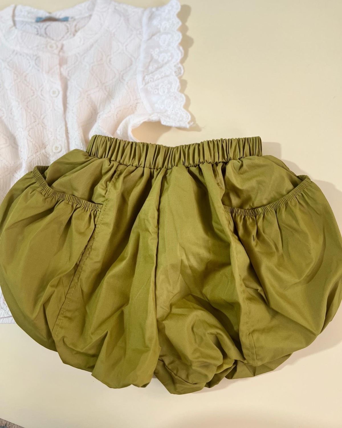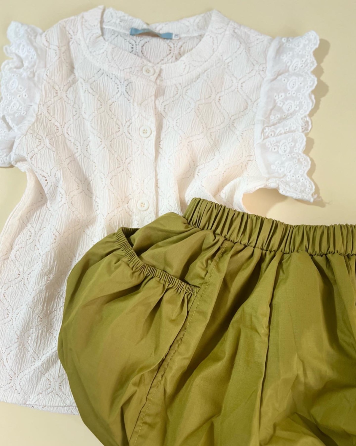 ست دو تکه شومیز خامه دوزی و شلوارک خمره ای