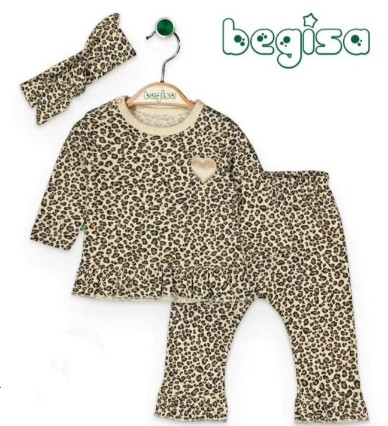 یه ست زیبا و جذاب پلنگی سه تکه ی ترک، برا پرنسس کوچولوهای نی نی ناردون، جنس کار نخ پنبه ی ضد حساسیت