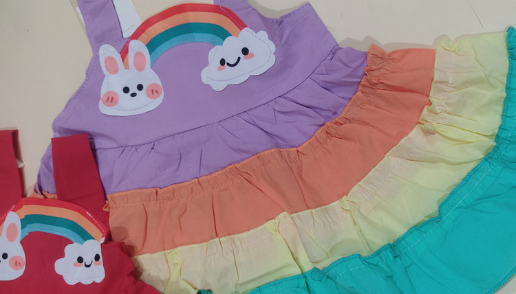 یه پیراهن رنگ رنگی شاد و پر چین وارداتی