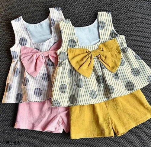 ست دخترانه تاپ خمره ای و شلوارک تدی